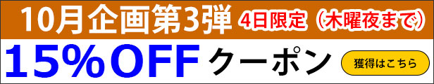 航空便に遅れがなければ月内月初くらいに、荷物が届くのですが、木曜夜までの15%オフクーポン企画を店舗内で開催しています。