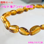 数年前までは丸玉のアンバーは買い付けに困らなかったのですが、現在はポーランド政府の輸出規制が続いていて、密輸状態との事で丸玉のアンバーはしばらく手に入らないのですが、タンブル型のバルト海産アンバーが少量買い付けできたので、新春セール会場に掲載しました。