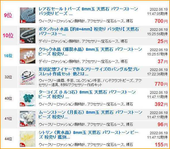 トパーズは10mmが値段高騰、品薄で数ヶ月買付けできませんでしたが、8mmと6mmはやや不定期ながらも買付けできています。