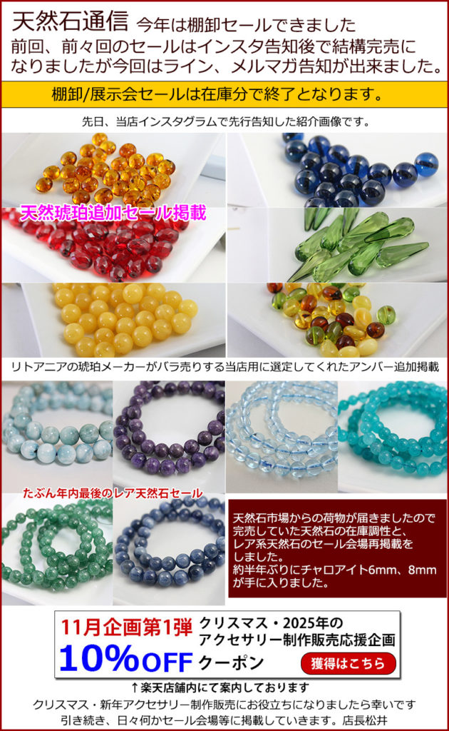 アンバーも琥珀メーカーが当店用に選定してくれた他で手に入らないバラ売り琥珀を追加セール掲載しました。
