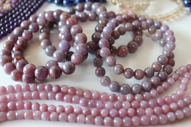 天然石ビーズのルビーは基本的にこの色合いですが、今月は6mmが薄ピンク系ですね。