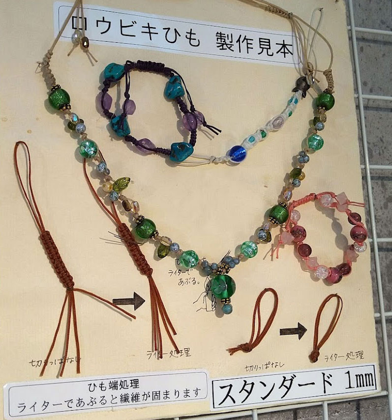 ロウビキヒモを使ったアクセサリー制作は、私のような不器用な人間では困難ですが、オリジナリティ溢れる作品になるので、作家さんにはロウビキヒモは人気です。