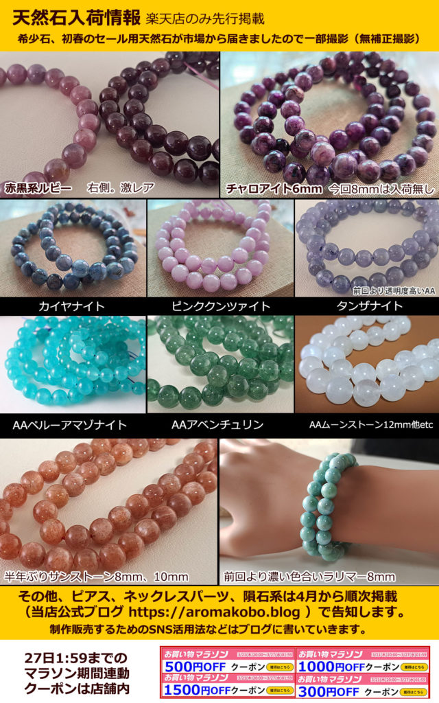 天然石市場からの荷物が楽天お買い物マラソン開始後に届いたので少し遅くなりましたが、撮影を終えたものから順次セール会場に掲載しました。