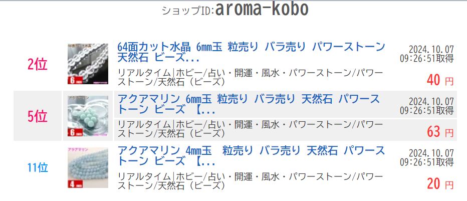 今週のランキングで入っている4mmアクアマリンですが、4mm玉は一部しか常時買い付けしていないため、4mmアクアマリンは不定期買い付けのセール用です。