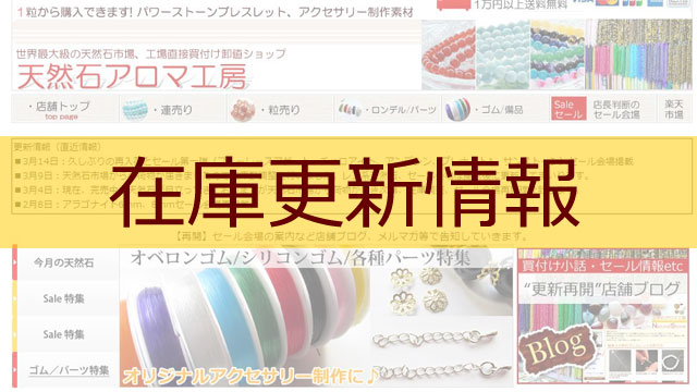 CATEGORY 雑記 来年から日本で買えない天然石の掲載もしていきます【スリーピングビューティー】 2025.12.11 雑記 aromakobo 天然石AromaKobo【公式サイト】 ハンドクラフトフェアに参加してきました 2024.06.26 雑記 aromakobo 天然石AromaKobo【公式サイト】 ブログデザインを大改装中します 2024.01.04 雑記 aromakobo 天然石AromaKobo【公式サイト】 年末年始セールのピンクオパール【イエローオパールは入荷未定】 2024.01.02 雑記 aromakobo 天然石AromaKobo【公式サイト】 【4日間限定15%OFF】近日内に天然石市場から荷物が届く予定です 2022.10.25 店舗運営情報 aromakobo 天然石AromaKobo【公式サイト】 石ふしぎ発見展が来週大阪で開催されますよ 2022.04.23 雑記 aromakobo 天然石AromaKobo【公式サイト】 やっと・・やっと天然石市場からの航空便が届きました【超綺麗なルビー】 2021.12.14 雑記 aromakobo 天然石AromaKobo【公式サイト】 天然石市場から航空便が届いたと思ったら・・【週末企画告知】 2021.11.12 雑記 aromakobo 天然石AromaKobo【公式サイト】 突然売れ出したガーネット 2021.11.08 雑記 aromakobo 天然石AromaKobo【公式サイト】 いい感じのラブラドライト到着【今月の天然石買い付け状況】 2021.10.19 雑記 aromakobo 天然石AromaKobo【公式サイト】 もっと見る