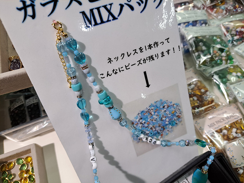 お得パック40gに150玉以上入っており、原価200~300円で販売価格3000円~5000円くらいのネックレスになります。