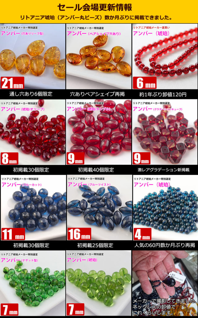 関東日帰りで行ったのは、これからクリスマスシーズンで、アクセサリー制作販売の大きな繁忙期なので、出来るだけ早く掲載したかったからなのですが、琥珀好きな人には他社で買えない値段なので、お得値かと思います。